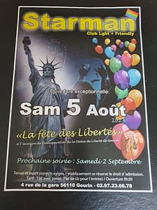 A partir de 00 h 30: au Starman, en centre-ville: « La Fête des Libertés » à l’occasion de l’inauguration de la Statue de la Liberté de Gourin