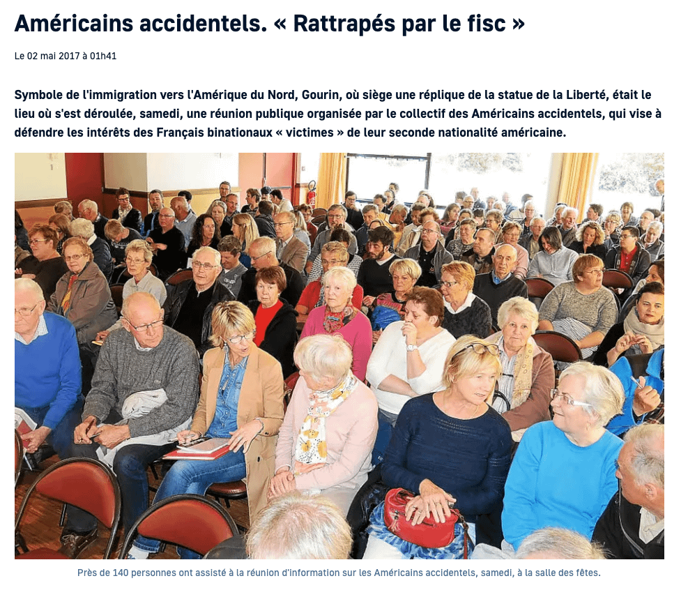 L’Association des Américains Accidentels (AAA) a été créée en avril 2017 à l’initiative de Fabien Lehagre, son président. La première réunion a eut lieu à Gourin sous le parrainage de Bretagne Transamerica. Elle a pour objet la défense des intérêts des personnes physiques détenant la nationalité américaine en plus de celle de l’un des Etats membres de l’Union européenne, mais résidant hors des Etats-Unis, contre les effets néfastes du caractère extraterritorial de la législation américaine. Elle a également pour objet la promotion et la défense du droit à l’intimité, à la vie privée et à la protection des données à caractère personnel des personnes concernées.